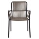 Μοντέρνο πολυθρόνα, κατασκευασμένη από σκελετό αλουμινίου σε ανθρακί απόχρωση, επενδυμένη με πλεκτό pe πλατύ κορδόνι στην πλάτη σε καπουτσίνο απόχρωση.